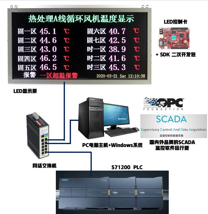 上面所描述的这种传统而繁琐的技术解决方案,一个非常明显技术特征就是:必须经过一台上位PC主机+Windows操作系统+上位组态监控软件+OPC服务器这么一个软硬件组合,组成PLC内存DB数据块数据自动采集与传输的中间过渡平台,才能实现LED大屏/工业液晶大屏显示内容与PLC实时数据同步刷新;这种繁琐而臃肿的配置组合,将在恶劣工业现场无法确保可靠运行,并且在紧凑安装、后续维护升级方面带来困难与隐患,缺陷不言而喻。