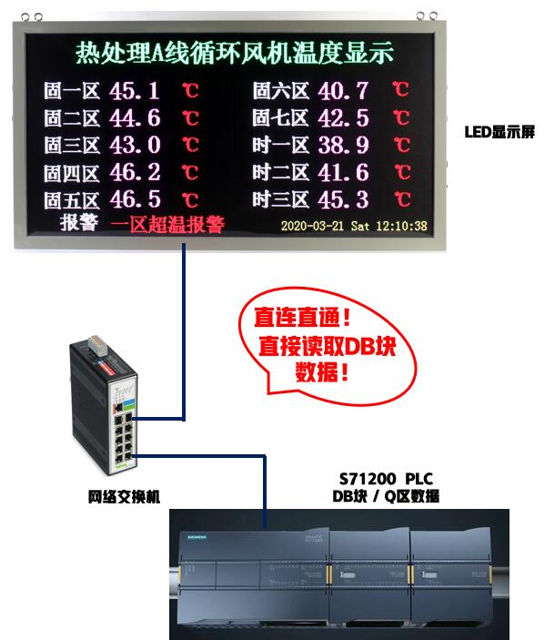 LED工业屏直接读取S71200系列PLC内存DB块数据